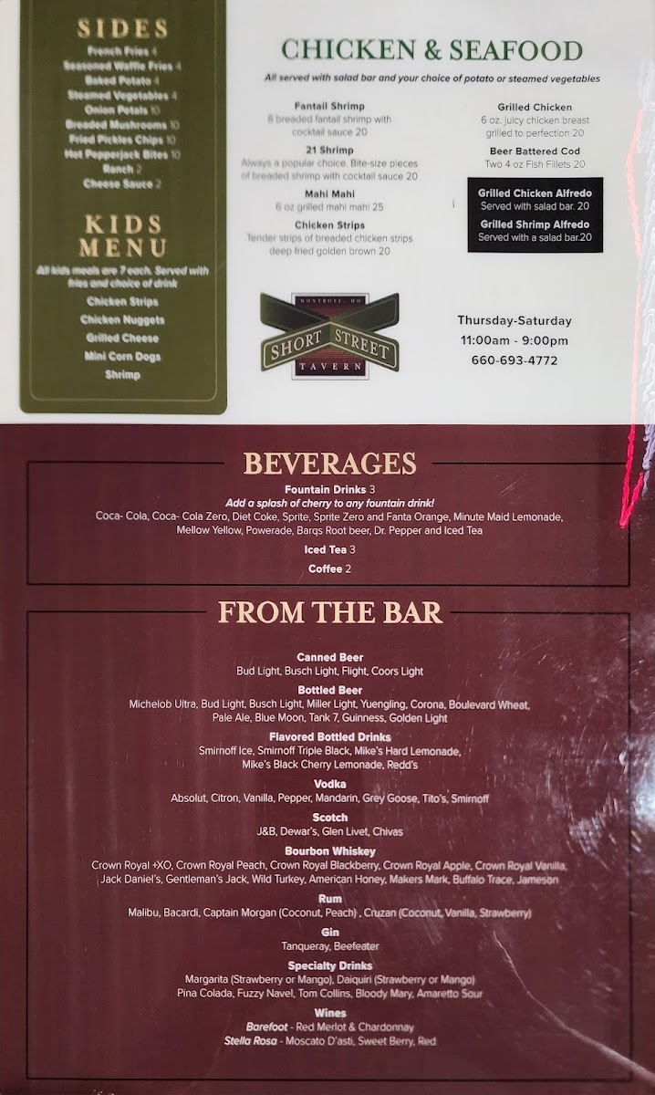 Welcome to Short Street Tavern, a hidden gem nestled in the heart of Montrose, Missouri. This vibrant spot, located at 104 W 4th St, is renowned for its exceptional steakhouse offerings and a menu that is sure to satisfy any appetite. Whether you’re a local or just passing through, Short Street Tavern is the perfect place to enjoy a delicious meal without the frills of fine dining.